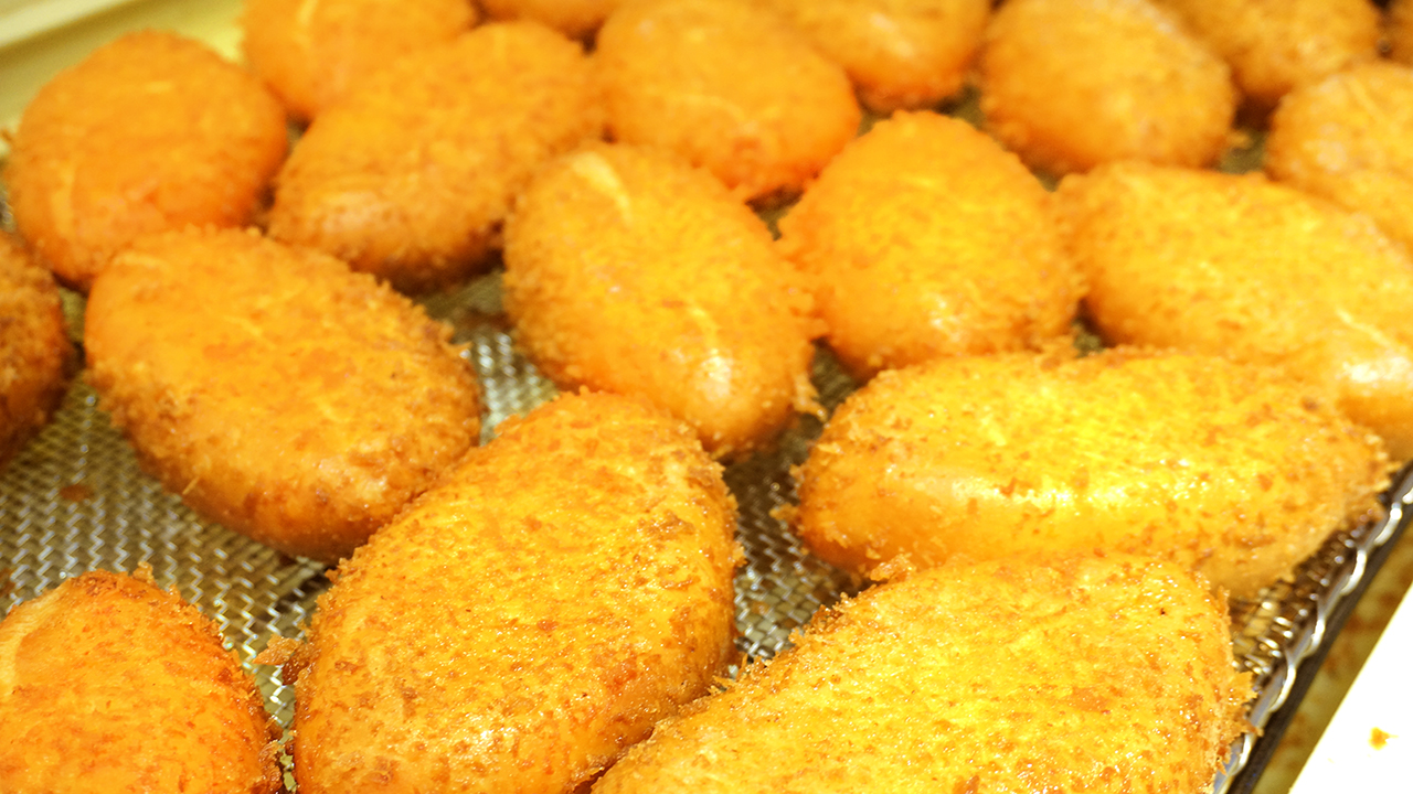 サクサクに揚げたパンの中に豚ひき肉と玉ねぎをふんだんに使用した甘くてスパイシーなカレー!パンの端までカレーフィリングがぎっしりと詰まっていて、ボリュームたっぷりなのも魅力です。しかしながら、揚げてあるのに胃もたれしない軽やかな食べ心地なので、男女共に大人気!揚げあがりは1日3回なので、是非揚げたてを狙ってお買い上げください!!